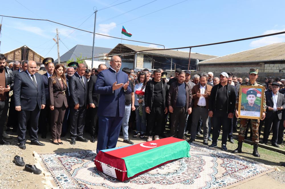 Rayon İcra Hakimiyyətinin başçısı Firdovsi Əliyev şəhidimizin ailə üzvlərinə bir daha baş sağlığı verib. Prezident İlham Əliyevin rəhbərliyi ilə hərbçilərimizin göstərdiyi rəşadətdən danışıb. Qazanılan tarixi qələbə ilə şəhidlərimizin qanının yerdə qalmadığını vurğulayıb. Mərasimdə şəhidimizin tabutu üzərindəki Azərbaycanın Respublikasının üçrəngli bayrağı şəhidin ailəsinə təqdim edilib.