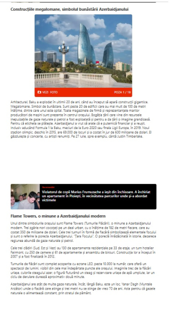 Rumıniya nəşri : Azərbaycan- cazibədar memarlıq və təhlükəsiz şəhər mühiti