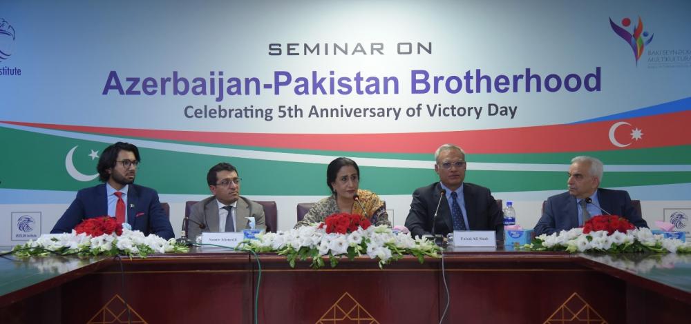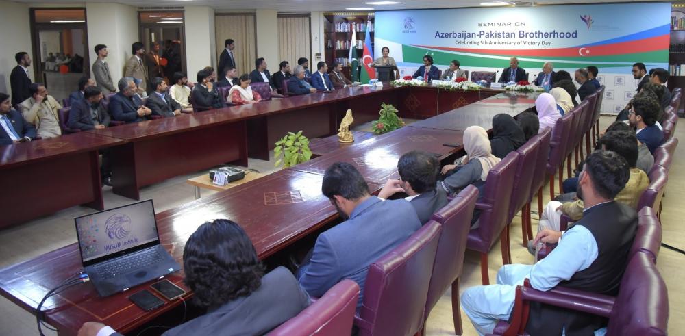 Bakı Beynəlxalq Multikulturalizm Mərkəzinin (BBMM) birgə təşkilatçılığı ilə Pakistanın Müsəlman İnstitutunda “Azərbaycan-Pakistan Dostluğu: Zəfər Gününün beşinci illiyi” mövzusunda seminar keçirilib. Tədbirdə Pakistanın keçmiş xarici işlər katibi Naela Çohan, İslamabad Xarici Xidmətlər Akademiyasının keçmiş direktoru Taraq Vahid, Azərbaycan Respublikasının İslamabaddakı səfirliyinin missiya rəhbərinin müavini Samir Əhmədli, admiral Seyid Faysal Əli Şah Hilal-e-İmtiaz və Pakistan Müsəlman İnstitutunun tədqiqatçısı Asif Tanvir çıxış ediblər. Çıxışçılar bildiriblər ki, Pakistan və Azərbaycan arasında qardaşlıq əlaqələri dərin köklərə malikdir. Onlar əsrlər boyu davam edən bu münasibətlərin mənəvi və mədəni ortaqlığa əsaslandığını vurğulayıblar. Diqqətə çatdırıblar ki, bu şanlı Zəfər Azərbaycan xalqının tarixinə, mədəniyyətinə və vətəninə olan dərin bağlılığının təntənəsidir. Xalqın, dövlətin və ordunun sarsılmaz iradəsinin, əzminin və qətiyyətinin təcəssümüdür.