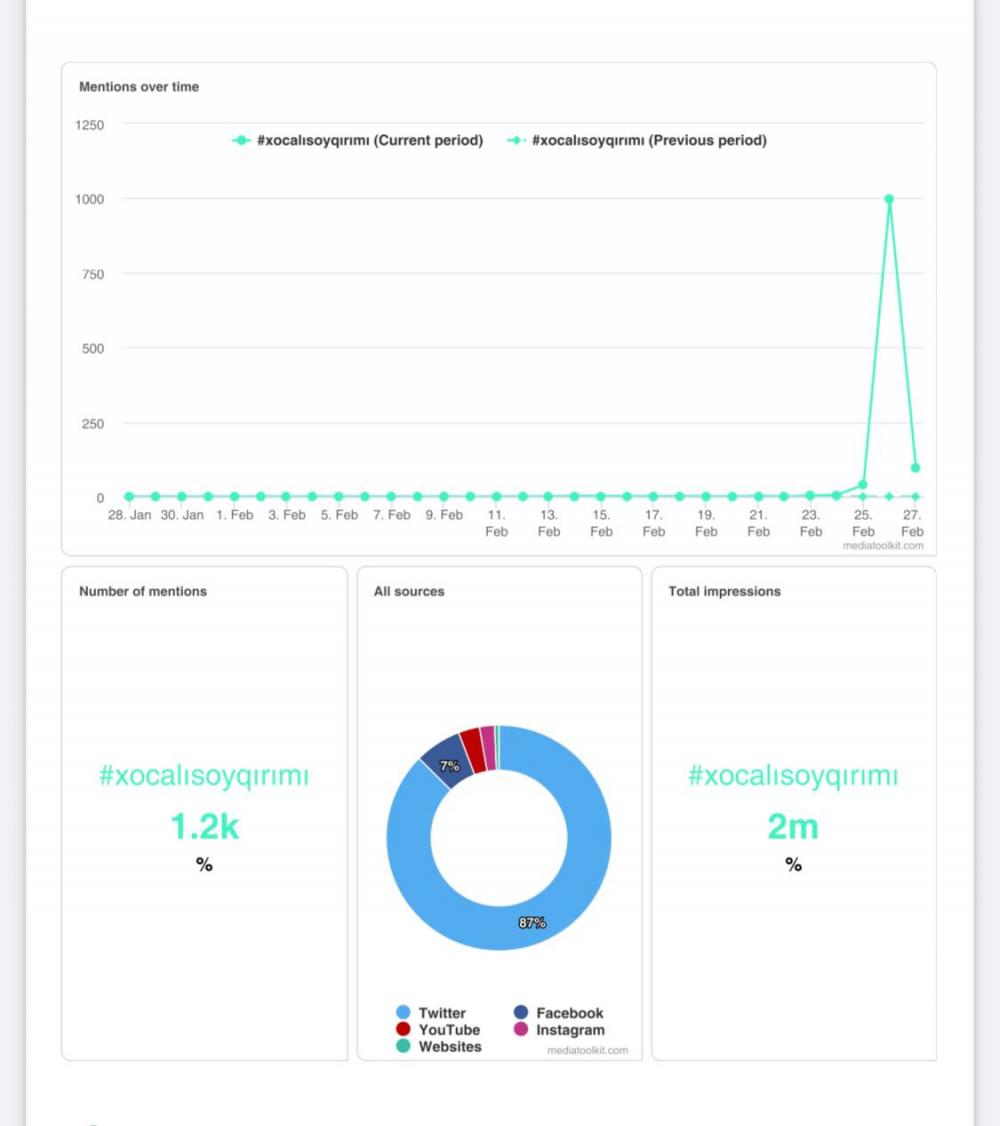Həmçinin kampaniya çərçivəsində #Xocalı30 həştəqi ilə 14 min 200, #XocalıSoyqırımı həştəqi ilə 12 min, #Xocalıüçünpaylaş həştəqi ilə 11 min 300, #davam2022 həştəqi ilə isə 11 min 500 paylaşım edilib. Kampaniya yerli və qlobal səviyyədə 2 milyondan çox istifadəçiyə çatıb. Kampaniya çərçivəsində xüsusi diqqət ayrılan #JusticeForKhojaly həştəqi ölkə və dünya azərbaycanlılarının da dəstəyi nəticəsində qlobal "Twitter" gündəmi olub.